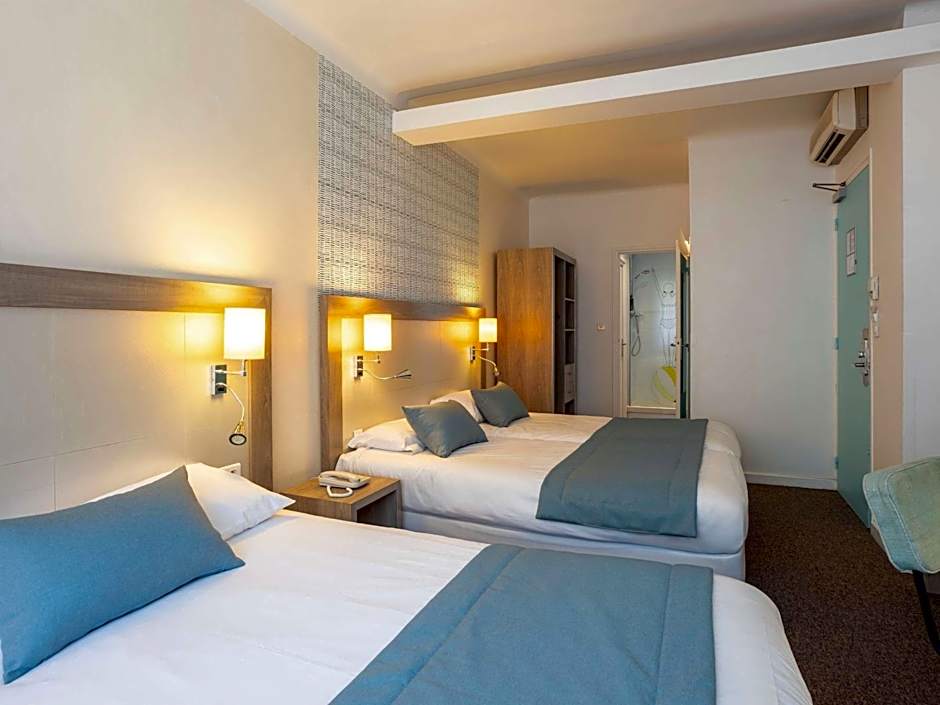 This family suite has a wardrobe and a private bathroom with a walk in shower.